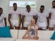 Зірка позувала з оголеними грудьми і в чорних колготках. Образ доповнила золотими прикрасами й лакованими туфлями на шпильці. Крім цього Алессандра фотографувалась у шкіряній спідниці й вкороченому жакеті. Алессандра родом з Бразилії. Бажання стати фот...